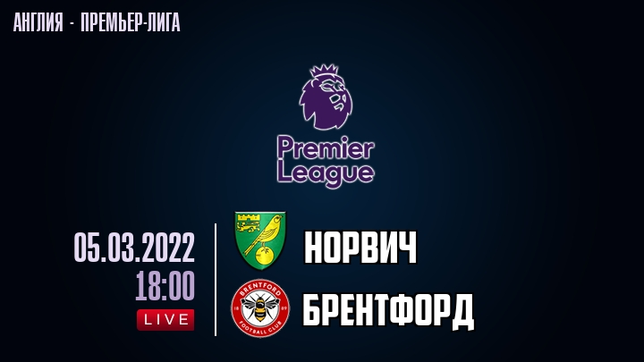 5 марта 2022 года, состоялась онлайн трансляция футбольного матча между футбольным клубом Норвич и футбольным клубом Брентфорд, проходящего в рамках Премьер лиги Англии.