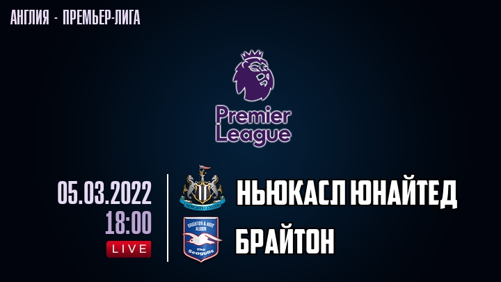 5 марта 2022 года, состоялась онлайн трансляция футбольного матча между футбольным клубом Ньюкасл Юнайтед и футбольным клубом Брайтон, проходящего в рамках Премьер лиги Англии.