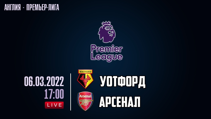 6 марта 2022 года, состоялась онлайн трансляция футбольного матча между футбольным клубом Уотфорд и футбольным клубом Арсенал, проходящего в рамках Премьер лиги Англии.