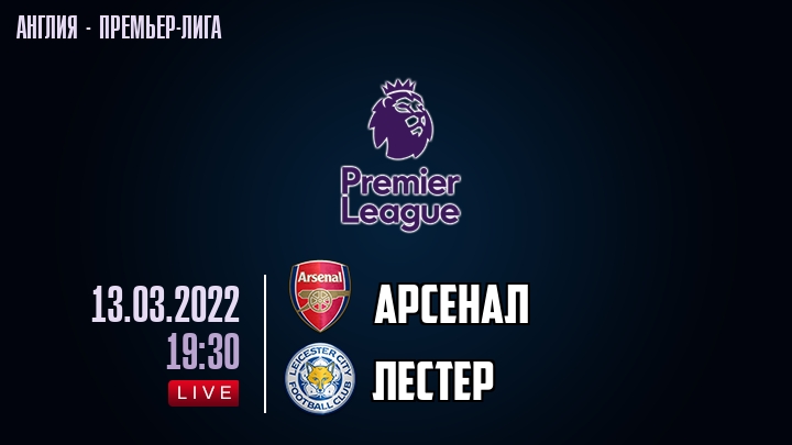 13 марта 2022 года, состоялась онлайн трансляция футбольного матча между футбольным клубом Арсенал и футбольным клубом Лестер, проходящего в рамках Премьер лиги Англии.