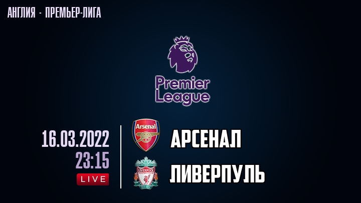 16 марта 2022 года, состоялась онлайн трансляция футбольного матча между футбольным клубом Арсенал и футбольным клубом Ливерпуль, проходящего в рамках Премьер лиги Англии.