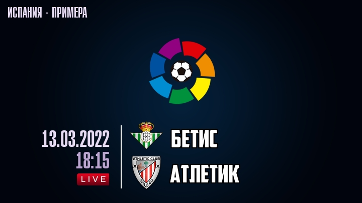 13 марта 2022 года, состоялась онлайн трансляция футбольного матча между футбольным клубом Бетис и футбольным клубом Атлетик, проходящего в рамках чемпионата Испании.