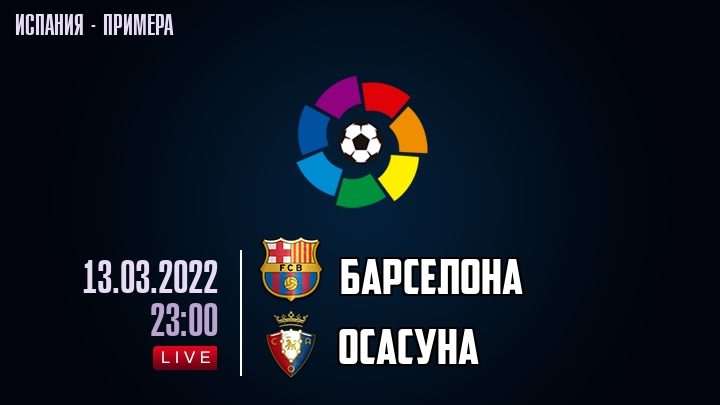 13 марта 2022 года, состоялась онлайн трансляция футбольного матча между футбольным клубом Барселона и футбольным клубом Осасуна, проходящего в рамках чемпионата Испании.