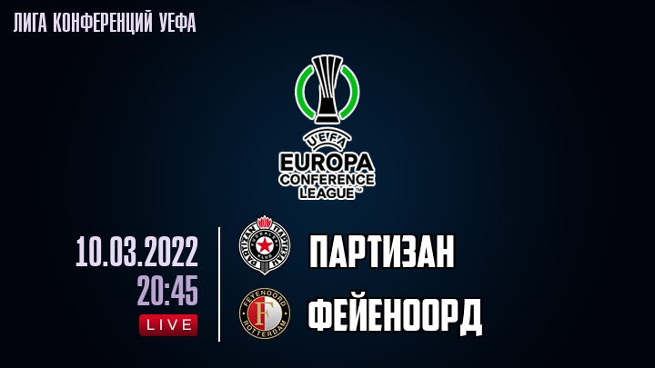 10 марта 2022 года, состоялась онлайн трансляция футбольного матча между футбольным клубом Партизан и футбольным клубом Фейеноорд, проходящего в рамках Лиги конференций УЕФА.
