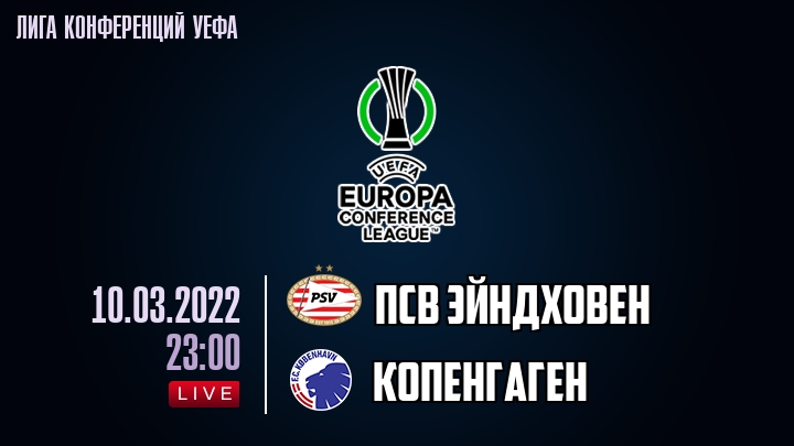 10 марта 2022 года, состоялась онлайн трансляция футбольного матча между футбольным клубом ПСВ Эйндховен и футбольным клубом Копенгаген, проходящего в рамках Лиги конференций УЕФА.