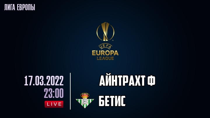17 марта 2022 года, состоялась онлайн трансляция футбольного матча между футбольным клубом Айнтрахт Ф и футбольным клубом Бетис, проходящего в рамках Лиги Европы.