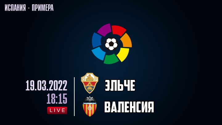 19 марта 2022 года, состоялась онлайн трансляция футбольного матча между футбольным клубом Эльче и футбольным клубом Валенсия, проходящего в рамках чемпионата Испании.