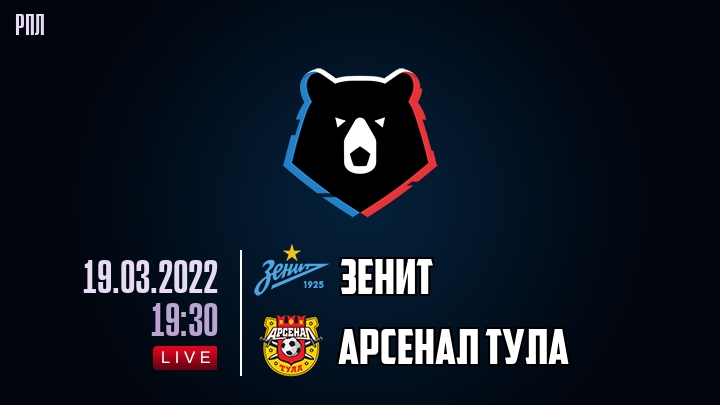 19 марта 2022 года, состоялась онлайн трансляция футбольного матча между футбольным клубом Зенит и футбольным клубом Арсенал Тула, проходящего в рамках чемпионата РПЛ.