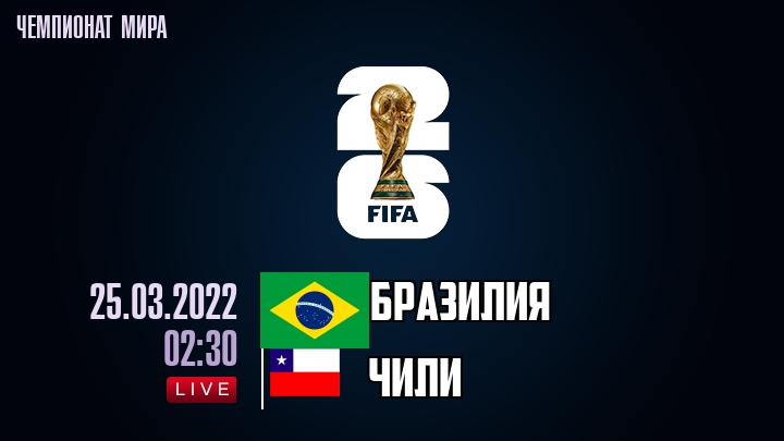 25 марта 2022 года, состоялась онлайн трансляция футбольного матча между сборной Бразилии и сборной Чили, проходящего в рамках Чемпионата мира по футболу.
