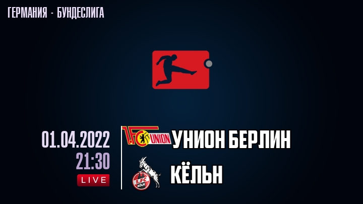 1 апреля 2022 года, состоялась онлайн трансляция футбольного матча между футбольным клубом Унион Берлин и футбольным клубом Кльн, проходящего в рамках Бундеслиги Германии.
