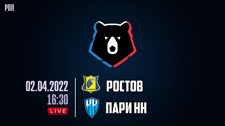 2 апреля 2022 года, состоялась онлайн трансляция футбольного матча между футбольным клубом Ростов и футбольным клубом Пари НН, проходящего в рамках чемпионата РПЛ.