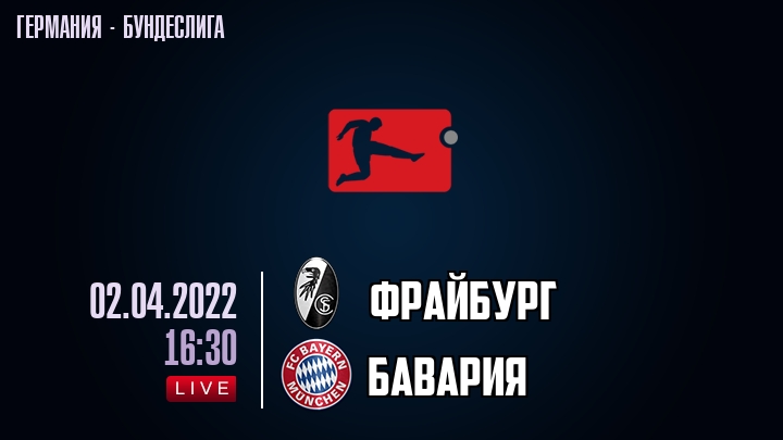 2 апреля 2022 года, состоялась онлайн трансляция футбольного матча между футбольным клубом Фрайбург и футбольным клубом Бавария, проходящего в рамках Бундеслиги Германии.