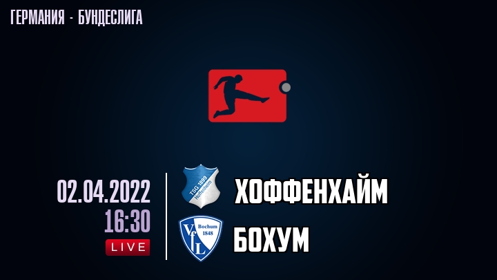2 апреля 2022 года, состоялась онлайн трансляция футбольного матча между футбольным клубом Хоффенхайм и футбольным клубом Бохум, проходящего в рамках Бундеслиги Германии.