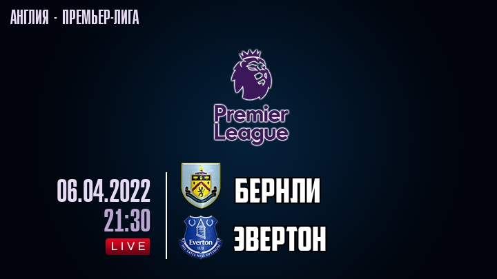 6 апреля 2022 года, состоялась онлайн трансляция футбольного матча между футбольным клубом Бернли и футбольным клубом Эвертон, проходящего в рамках Премьер лиги Англии.