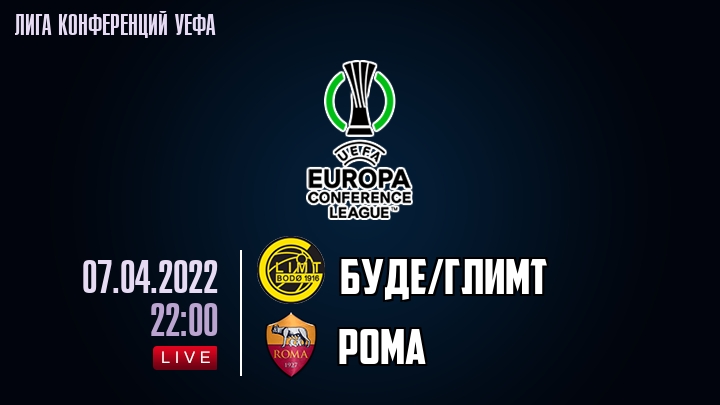 7 апреля 2022 года, состоялась онлайн трансляция футбольного матча между футбольным клубом БудеГлимт и футбольным клубом Рома, проходящего в рамках Лиги конференций УЕФА.