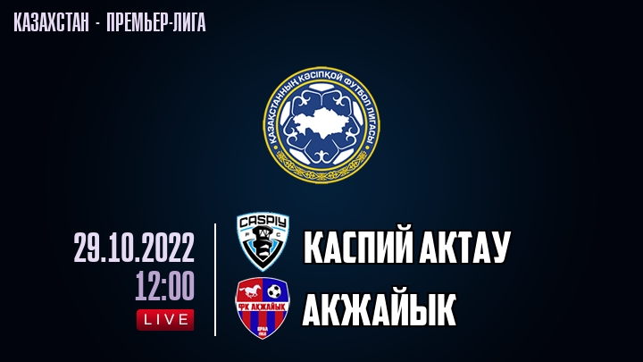 29 октября 2022 года, состоялась онлайн трансляция футбольного матча между футбольным клубом Каспий Актау и футбольным клубом Акжайык, проходящего в рамках Премьер лиги Казахстана.