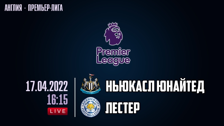 17 апреля 2022 года, состоялась онлайн трансляция футбольного матча между футбольным клубом Ньюкасл Юнайтед и футбольным клубом Лестер, проходящего в рамках Премьер лиги Англии.