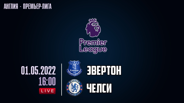 1 мая 2022 года, состоялась онлайн трансляция футбольного матча между футбольным клубом Эвертон и футбольным клубом Челси, проходящего в рамках Премьер лиги Англии.