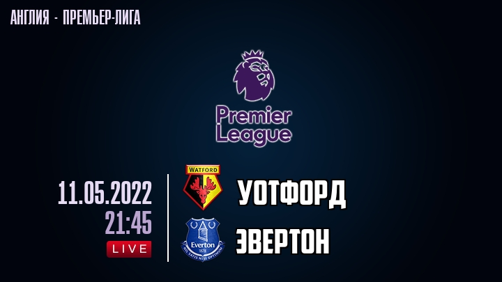 11 мая 2022 года, состоялась онлайн трансляция футбольного матча между футбольным клубом Уотфорд и футбольным клубом Эвертон, проходящего в рамках Премьер лиги Англии.