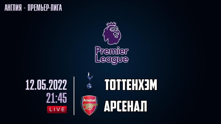 12 мая 2022 года, состоялась онлайн трансляция футбольного матча между футбольным клубом Тоттенхэм и футбольным клубом Арсенал, проходящего в рамках Премьер лиги Англии.
