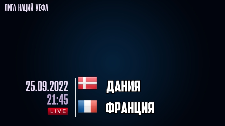 25 сентября 2022 года, состоялась онлайн трансляция футбольного матча между сборной Дании и сборной Франции, проходящего в рамках Лиги наций УЕФА.