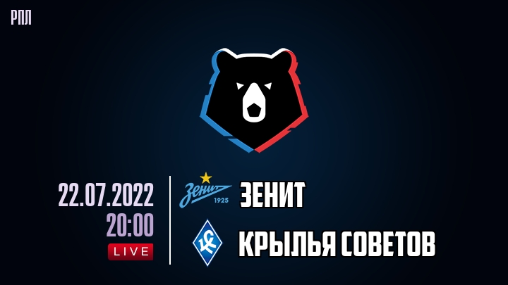 22 июля 2022 года, состоялась онлайн трансляция футбольного матча между футбольным клубом Зенит и футбольным клубом Крылья Советов, проходящего в рамках чемпионата РПЛ.