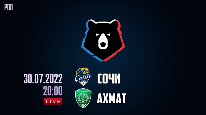 30 июля 2022 года, состоялась онлайн трансляция футбольного матча между футбольным клубом Сочи и футбольным клубом Ахмат, проходящего в рамках чемпионата РПЛ.