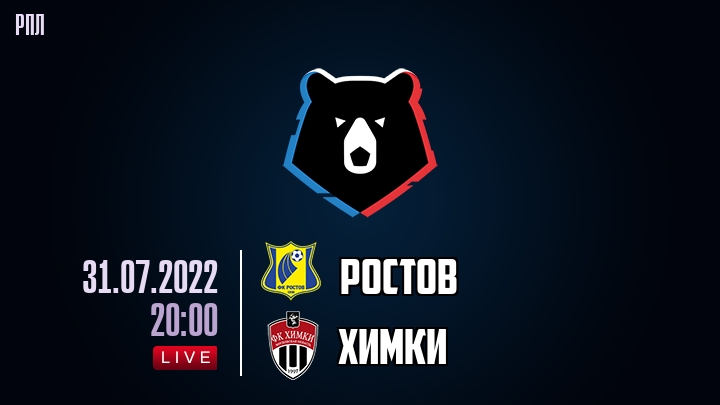 31 июля 2022 года, состоялась онлайн трансляция футбольного матча между футбольным клубом Ростов и футбольным клубом Химки, проходящего в рамках чемпионата РПЛ.