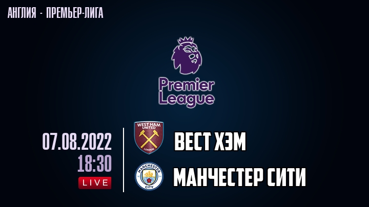 7 августа 2022 года, состоялась онлайн трансляция футбольного матча между футбольным клубом Вест Хэм и футбольным клубом Манчестер Сити, проходящего в рамках Премьер лиги Англии.
