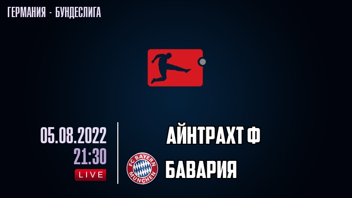 5 августа 2022 года, состоялась онлайн трансляция футбольного матча между футбольным клубом Айнтрахт Ф и футбольным клубом Бавария, проходящего в рамках Бундеслиги Германии.