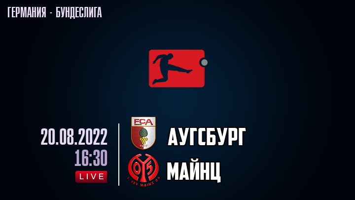 20 августа 2022 года, состоялась онлайн трансляция футбольного матча между футбольным клубом Аугсбург и футбольным клубом Майнц, проходящего в рамках Бундеслиги Германии.