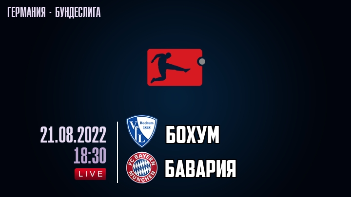 21 августа 2022 года, состоялась онлайн трансляция футбольного матча между футбольным клубом Бохум и футбольным клубом Бавария, проходящего в рамках Бундеслиги Германии.