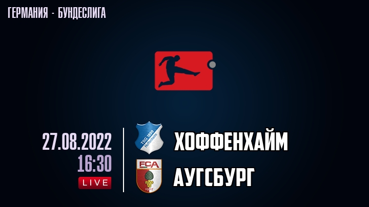 27 августа 2022 года, состоялась онлайн трансляция футбольного матча между футбольным клубом Хоффенхайм и футбольным клубом Аугсбург, проходящего в рамках Бундеслиги Германии.