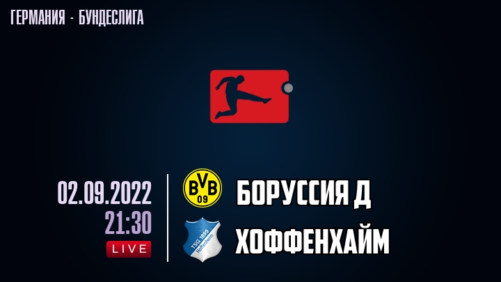 2 сентября 2022 года, состоялась онлайн трансляция футбольного матча между футбольным клубом Боруссия Д и футбольным клубом Хоффенхайм, проходящего в рамках Бундеслиги Германии.