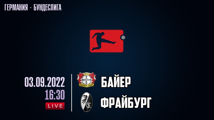 3 сентября 2022 года, состоялась онлайн трансляция футбольного матча между футбольным клубом Байер и футбольным клубом Фрайбург, проходящего в рамках Бундеслиги Германии.