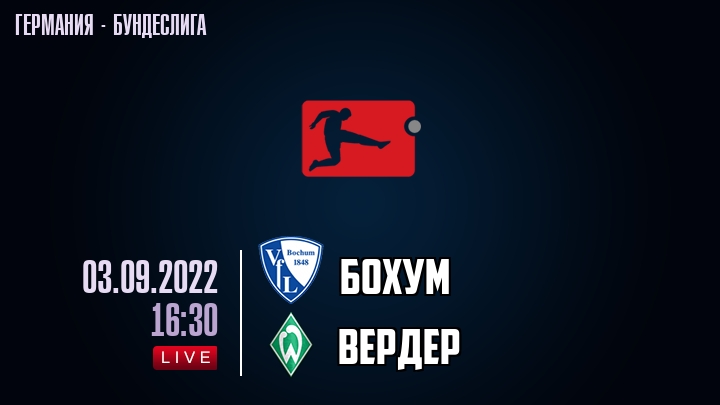 3 сентября 2022 года, состоялась онлайн трансляция футбольного матча между футбольным клубом Бохум и футбольным клубом Вердер, проходящего в рамках Бундеслиги Германии.