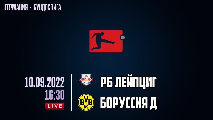 10 сентября 2022 года, состоялась онлайн трансляция футбольного матча между футбольным клубом РБ Лейпциг и футбольным клубом Боруссия Д, проходящего в рамках Бундеслиги Германии.