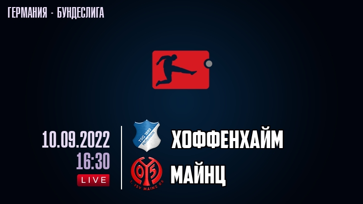 10 сентября 2022 года, состоялась онлайн трансляция футбольного матча между футбольным клубом Хоффенхайм и футбольным клубом Майнц, проходящего в рамках Бундеслиги Германии.