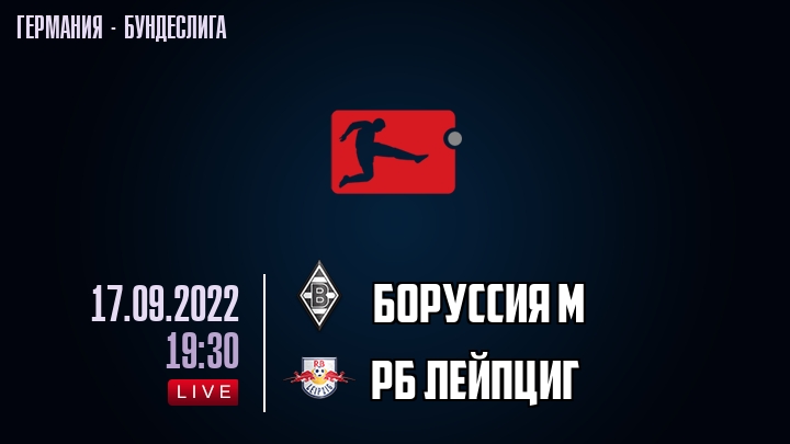 17 сентября 2022 года, состоялась онлайн трансляция футбольного матча между футбольным клубом Боруссия М и футбольным клубом РБ Лейпциг, проходящего в рамках Бундеслиги Германии.