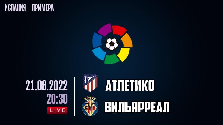 21 августа 2022 года, состоялась онлайн трансляция футбольного матча между футбольным клубом Атлетико и футбольным клубом Вильярреал, проходящего в рамках чемпионата Испании.