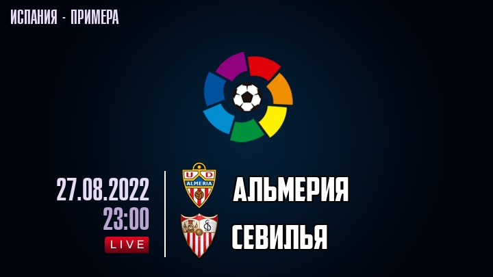 27 августа 2022 года, состоялась онлайн трансляция футбольного матча между футбольным клубом Альмерия и футбольным клубом Севилья, проходящего в рамках чемпионата Испании.