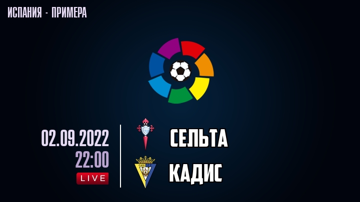 2 сентября 2022 года, состоялась онлайн трансляция футбольного матча между футбольным клубом Сельта и футбольным клубом Кадис, проходящего в рамках чемпионата Испании.