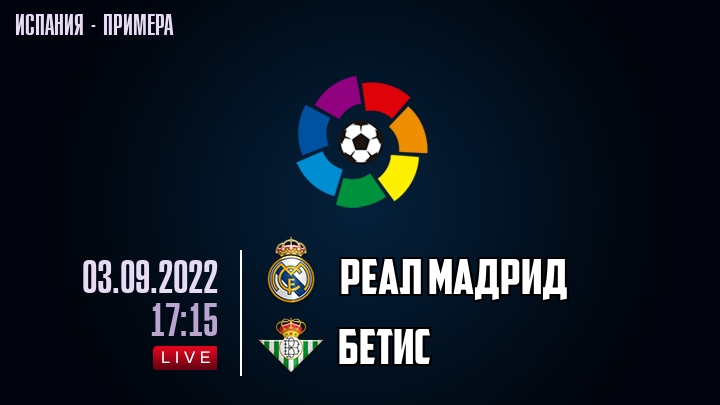 3 сентября 2022 года, состоялась онлайн трансляция футбольного матча между футбольным клубом Реал Мадрид и футбольным клубом Бетис, проходящего в рамках чемпионата Испании.