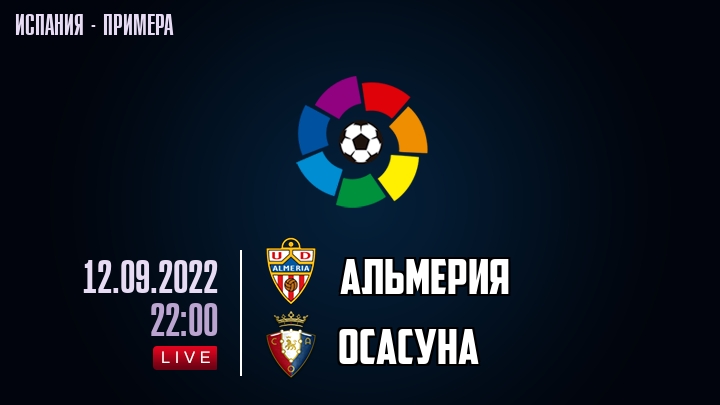 12 сентября 2022 года, состоялась онлайн трансляция футбольного матча между футбольным клубом Альмерия и футбольным клубом Осасуна, проходящего в рамках чемпионата Испании.