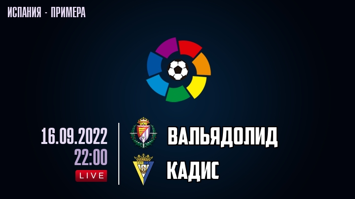 16 сентября 2022 года, состоялась онлайн трансляция футбольного матча между футбольным клубом Вальядолид и футбольным клубом Кадис, проходящего в рамках чемпионата Испании.