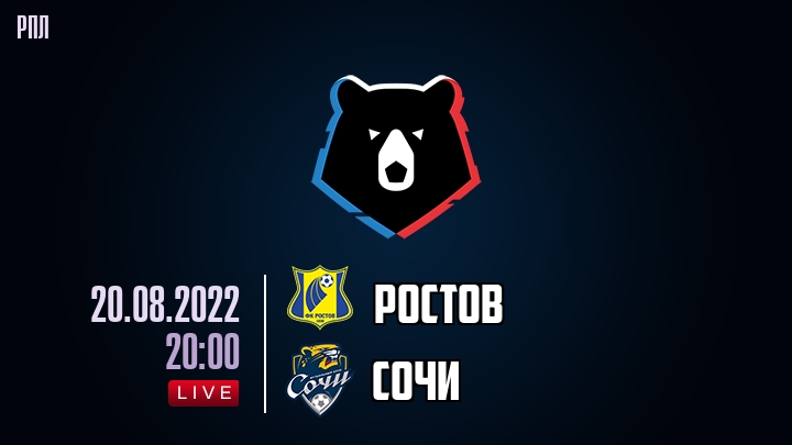 20 августа 2022 года, состоялась онлайн трансляция футбольного матча между футбольным клубом Ростов и футбольным клубом Сочи, проходящего в рамках чемпионата РПЛ.