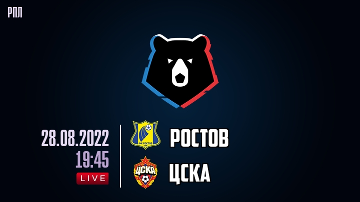 28 августа 2022 года, состоялась онлайн трансляция футбольного матча между футбольным клубом Ростов и футбольным клубом ЦСКА, проходящего в рамках чемпионата РПЛ.