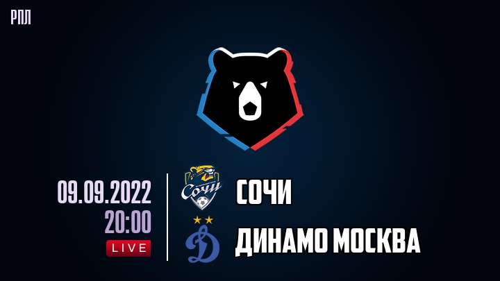 9 сентября 2022 года, состоялась онлайн трансляция футбольного матча между футбольным клубом Сочи и футбольным клубом Динамо Москва, проходящего в рамках чемпионата РПЛ.