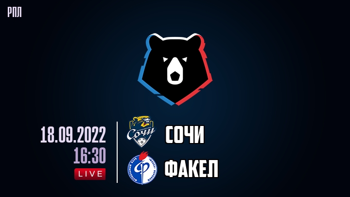 18 сентября 2022 года, состоялась онлайн трансляция футбольного матча между футбольным клубом Сочи и футбольным клубом Факел, проходящего в рамках чемпионата РПЛ.