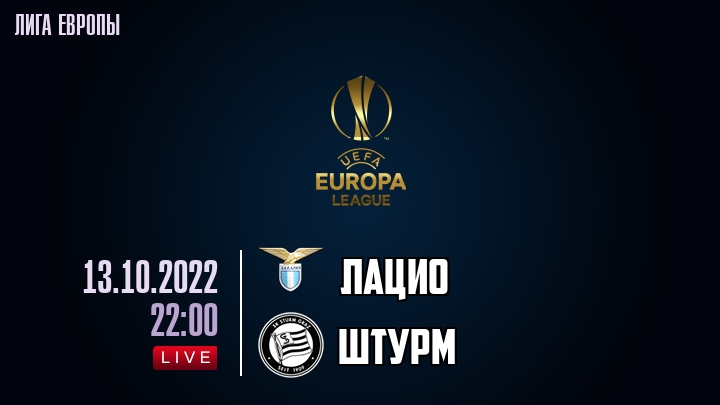 13 октября 2022 года, состоялась онлайн трансляция футбольного матча между футбольным клубом Лацио и футбольным клубом Штурм, проходящего в рамках Лиги Европы.